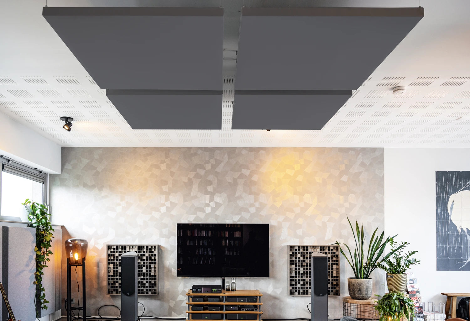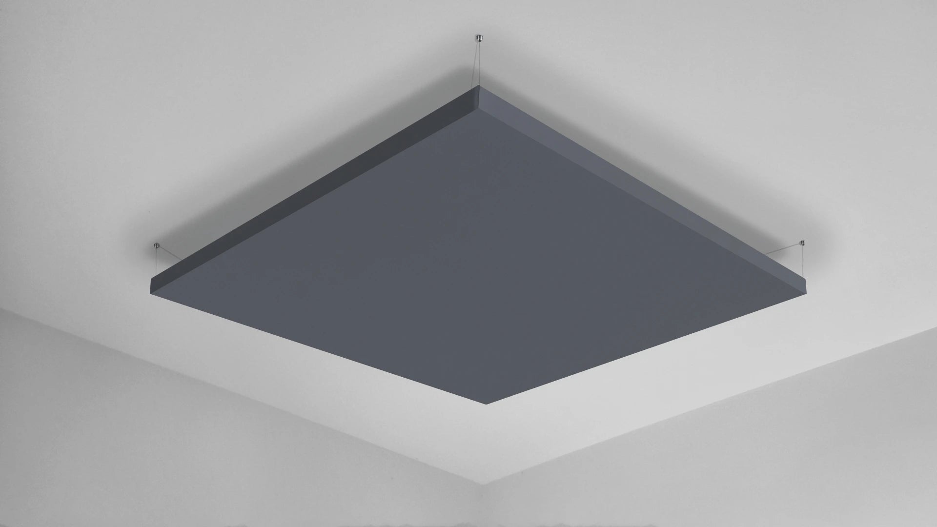 Dankzij de ophanging aan het plafond heeft dit akoestisch paneel een dubbelzijdige werking. Geluid dat zowel van onder als boven op het paneel valt eindigt in een akoestisch 'zwart gat'. De bijgeleverde ophangset is eenvoudig traploos verstelbaar van 4 tot 120cm.