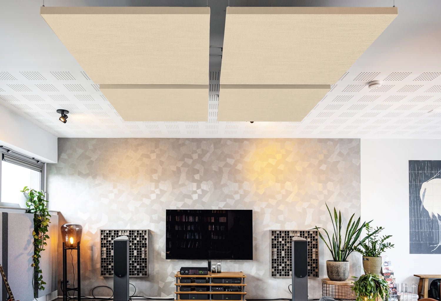 Dankzij de ophanging aan het plafond heeft dit akoestisch paneel een dubbelzijdige werking. Geluid dat zowel van onder als boven op het paneel valt eindigt in een akoestisch 'zwart gat'. De bijgeleverde ophangset is eenvoudig traploos verstelbaar van 4 tot 120cm.