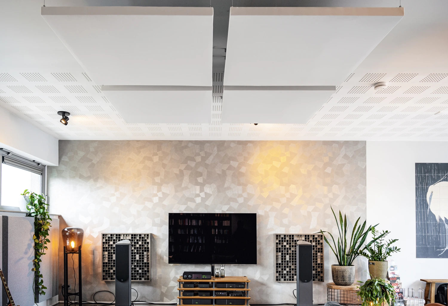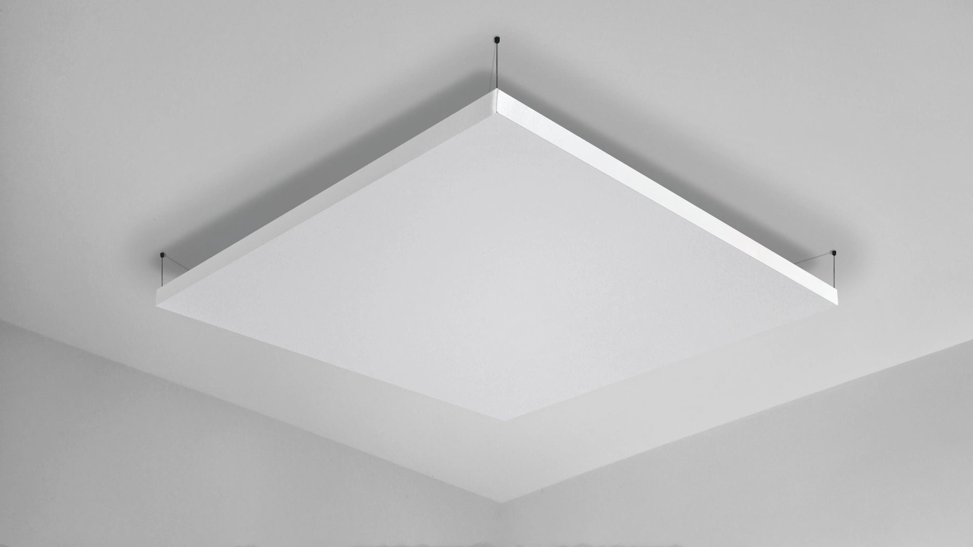 Dankzij de ophanging aan het plafond heeft dit akoestisch paneel een dubbelzijdige werking. Geluid dat zowel van onder als boven op het paneel valt eindigt in een akoestisch 'zwart gat'. De bijgeleverde ophangset is eenvoudig traploos verstelbaar van 4 tot 120cm.